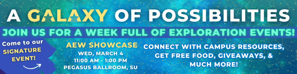 Classes are just one part of your undergraduate journey. Academic Exploration Week (AEW) helps you dive into everything else that shapes your UCF experience. Whether you’re curious about undergraduate research, dreaming of studying abroad, hoping to build community on campus, or exploring majors and future career paths, AEW brings it all together.