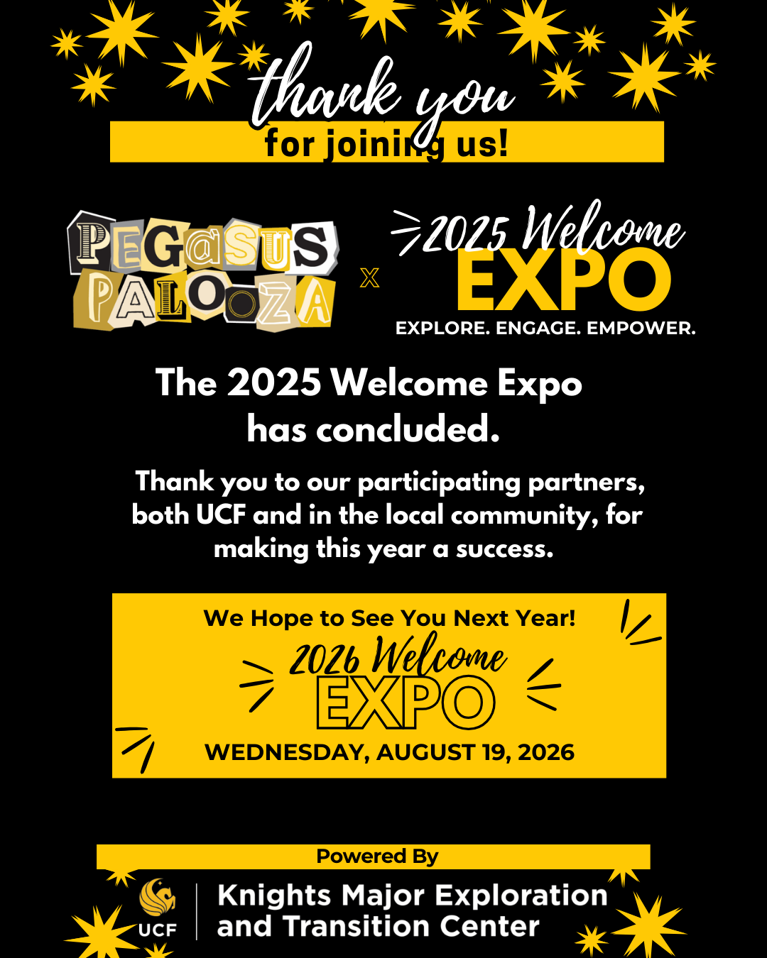 For over 25 years, the UCF Welcome Expo has highlighted a wide range of UCF programs, campus resources, and local businesses. Hosted by the Knights Major Exploration and Transition Center (KMETC), the event is held during the first week of fall classes, and regularly attracts over 3,500 attendees. This popular event offers both new and returning students a valuable opportunity to engage with UCF’s growing student community—all in one central location.